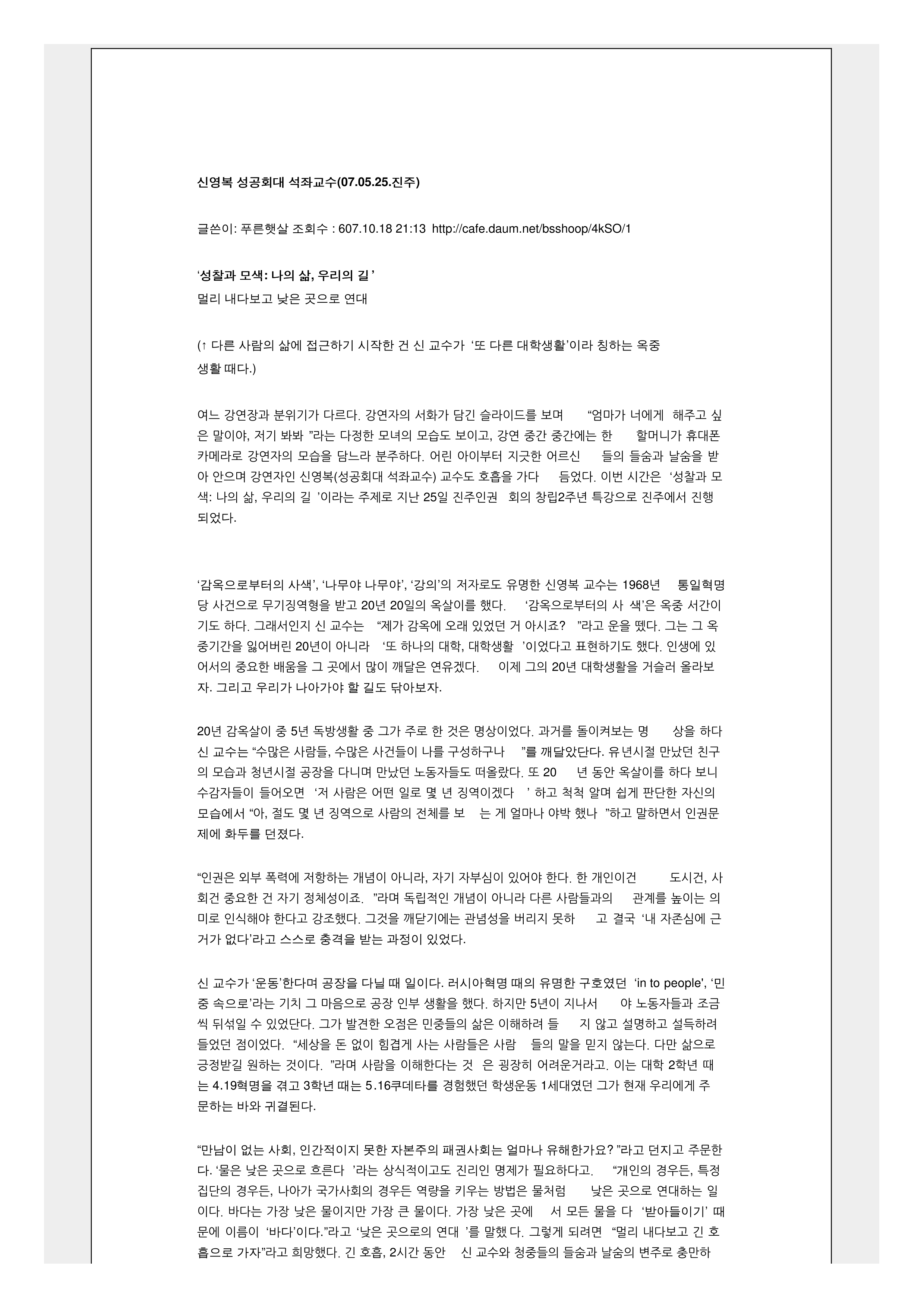 [강연] 대전/충남. 뉴스 파일/신영복교수 강연회