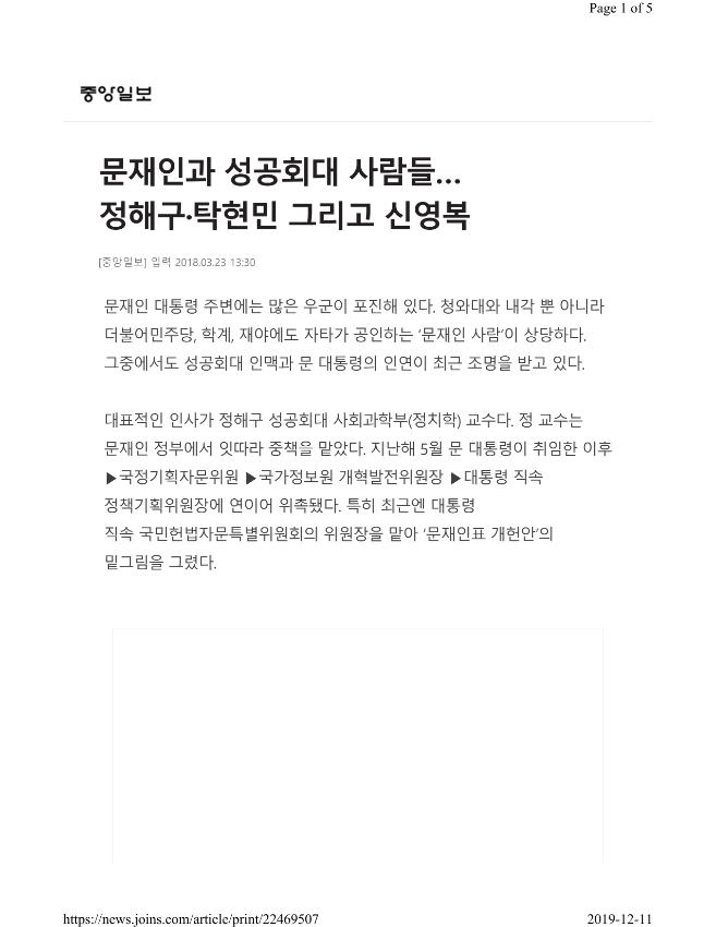 [기사] 문재인과 성공회대 사람들…정해구·탁현민 그리고 신영복