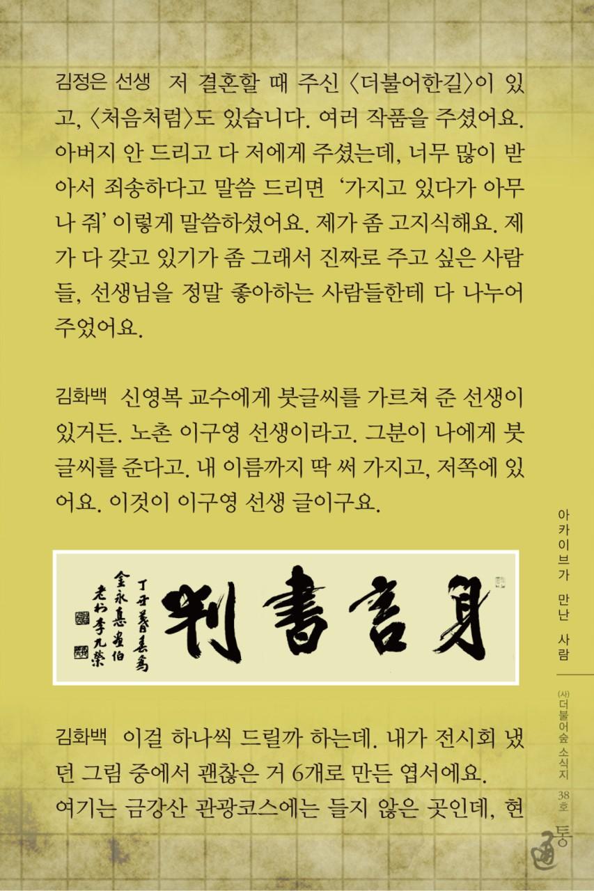 아카이브 팀은 지난 6월 21일 오후, 김영덕 화백과 그 따님 김정은 선생님을 만났습니다. 그 인터뷰 요약을 지난 달에 이어 싣습니다.