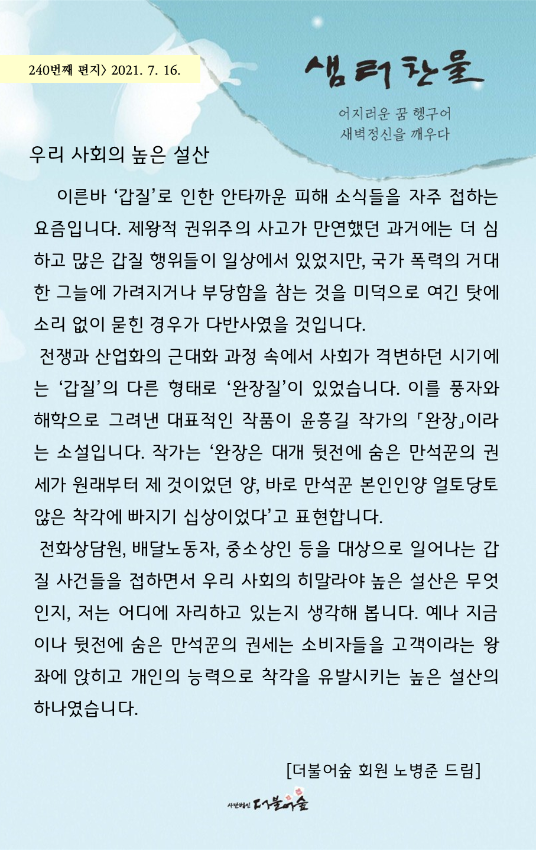 [소식지] 더불어숲 샘터찬물편지 240화