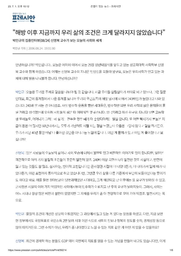 박인규 : 해방 이후의 지배적인 구조가 기본적으로 바뀌지 않았다고 본다고 말씀하셨는데, 가장 중요한 지표는 어떤 겁니까?